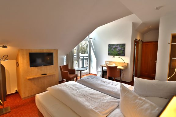 Unsere stilvoll eingerichteten Zimmer bieten Ihnen Ruhe, Komfort und eine erholsame Nachtruhe.